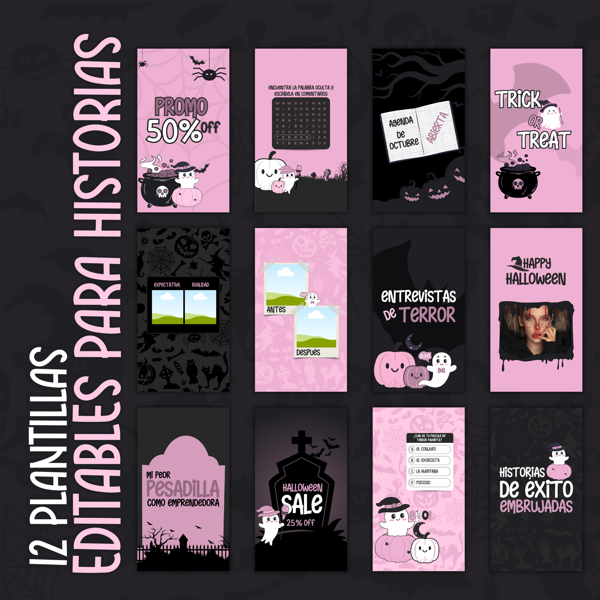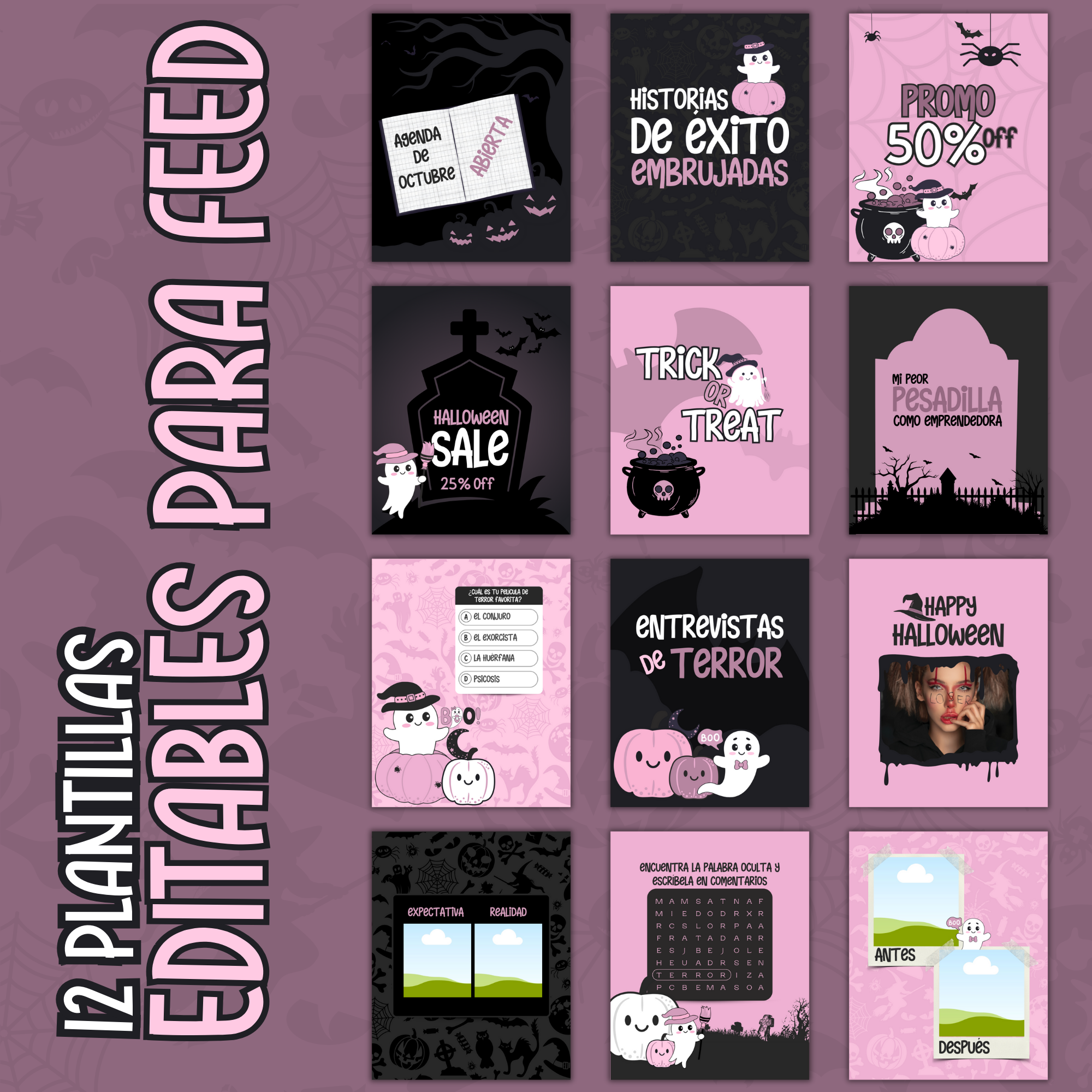 LISTO PARA USAR: Agrupa y AHORRA dinero mientras mantienes tus historias y tu feed principal coherentes a este Halloween. Este paquete es ideal para cualquier tipo de emprendedora ya que es fácilmente adaptable. Dale un toque de creatividad a tu contenido en esta temporada espeluznante con este pack de plantillas.